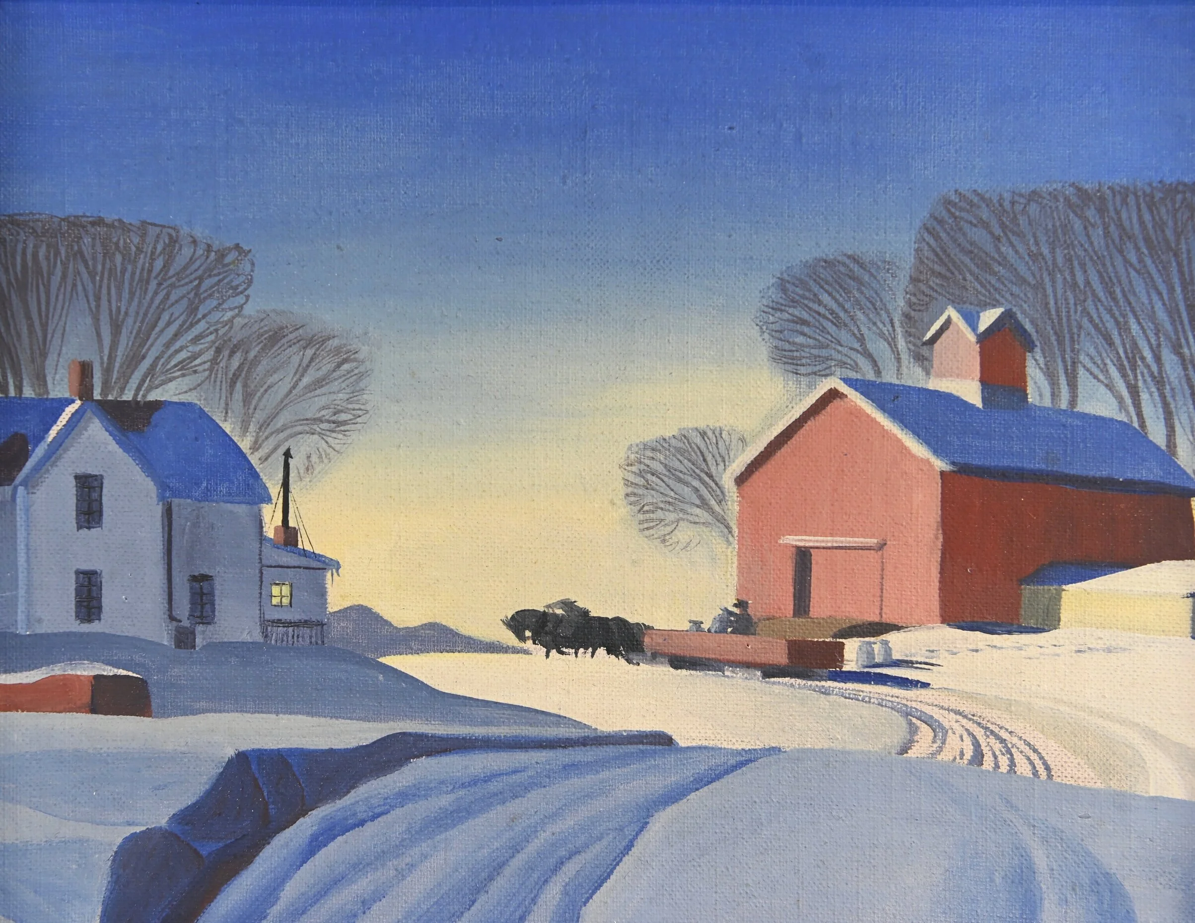 Untitled (Winter Farm #2), Oil on Canvas Panel, 1948